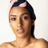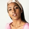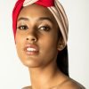 Turbante con trenza al medio, dos colores, en Yackard Galleta, con elástico grueso en la parte posterior, para mejor agarre.